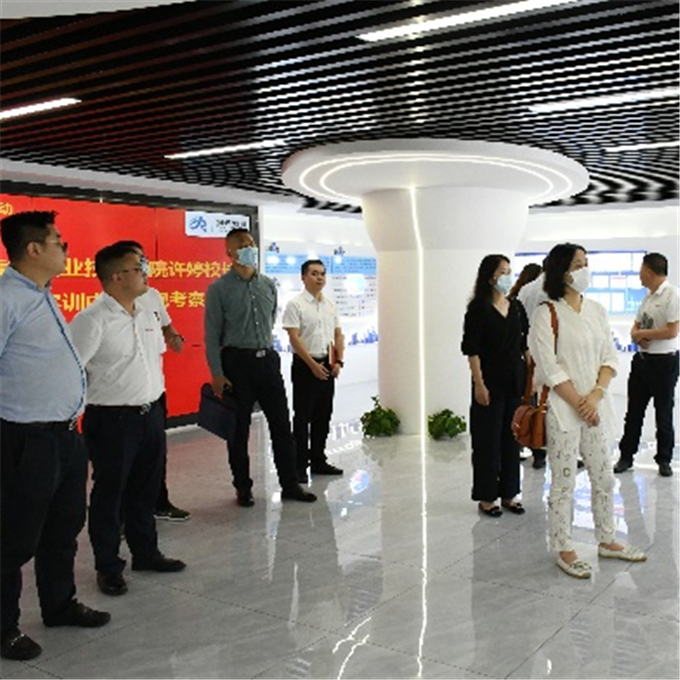 走访团一行参观了金信润天办公区、下属润天教育培训中心和公共实训中心,进一步了解了金信润天的公司规模、业务范围、管理模式等基本情况,重点了解了公共实训中心的硬件设施、课程与师资、人才生态圈、学员就业渠道等软实力。