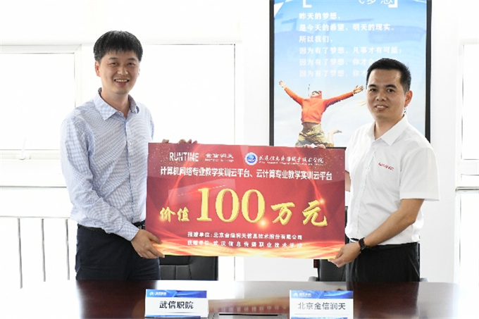 会上,金信润天还向我校捐赠了价值100万元的教学实训平台。据了解,该教学实训平台,面向校企合作专业,提供丰富项目资源和实战环境,设有课程学习、动手实操、综合实训、在线考试、学情分析等多项功能,融学、练、训、测、查为一体,全面提升学生ICT技术能力。