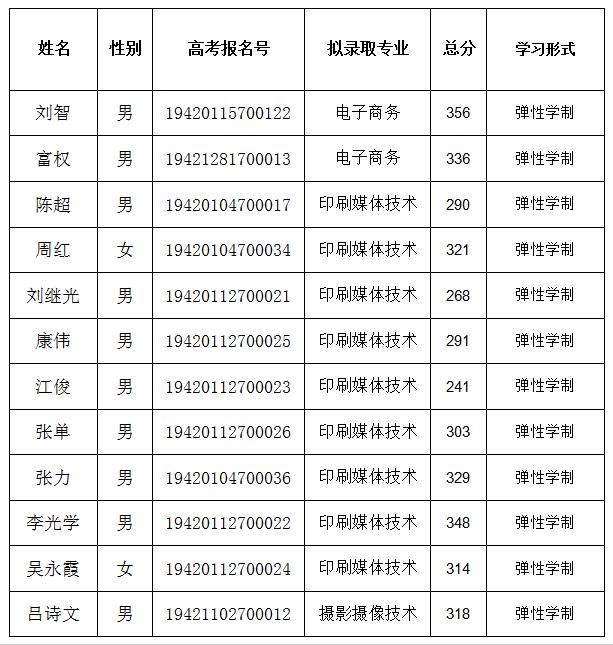 我校2019年高职扩招(第一批)招生考试已经结束。根据省教育厅等七部门关于印发《2019年湖北省高职扩招专项工作方案》的通知(鄂教职成[2019]2号)文件精神。我校高职扩招工作领导小组根据公布的录取标准和录取办法,确定各专业拟录取名单。现将拟录取名单公示如下: