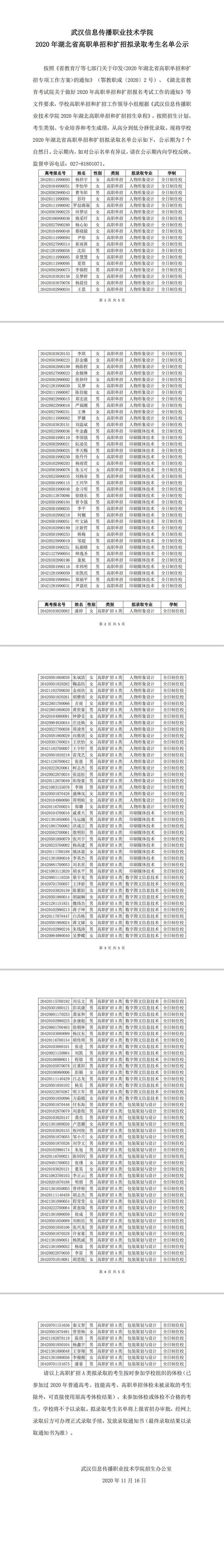 2020年湖北省高职单招和扩招拟录取考生名单公示
