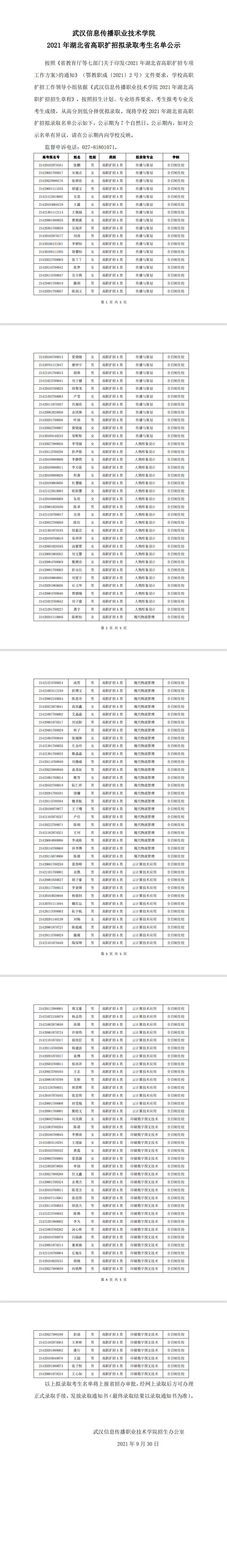 2021年湖北省高职扩招拟录取考生名单公示