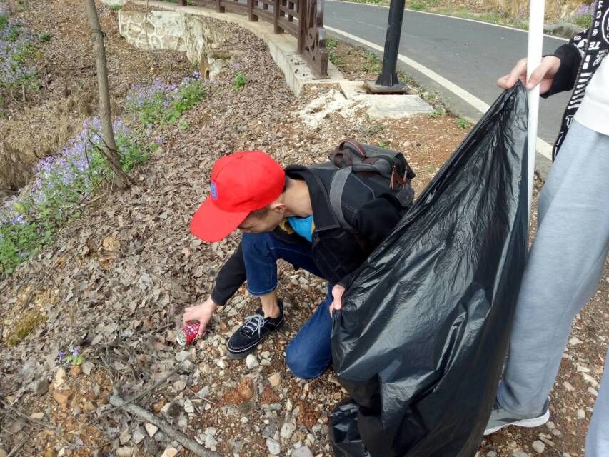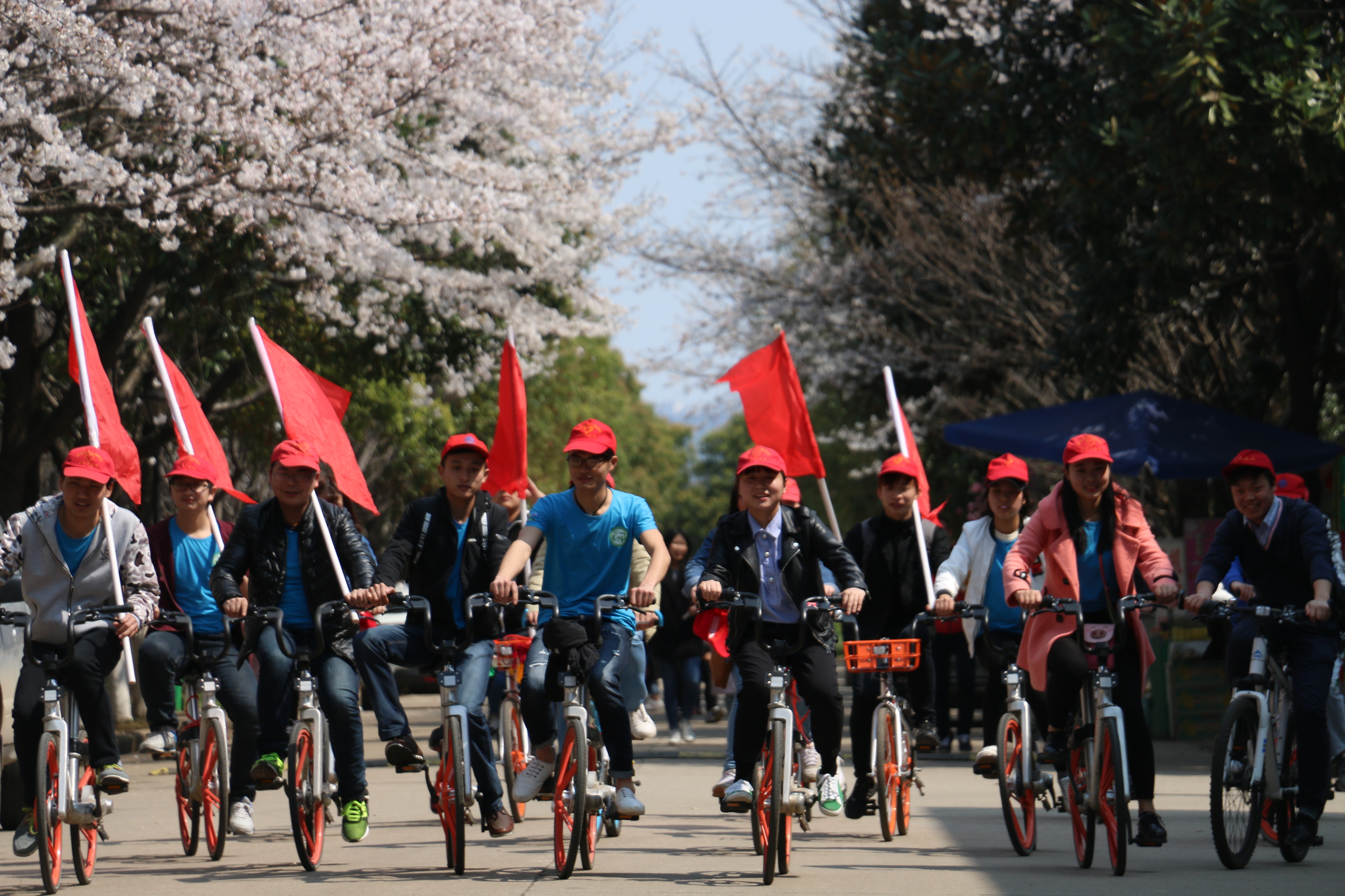 3月14日下午,在分团委书记鲁静老师和辅导员邓有创老师的带领下,26名团员人手一辆共享单车,以低碳出行的方式,从学校出发历经一个小时,骑行了数十公里抵达江夏区环山绿道。师生统一的蓝色T恤、红色的志愿服务帽、飘扬的志愿服务旗帜、青春洋溢的气息,成为沿途一道亮丽的风景。