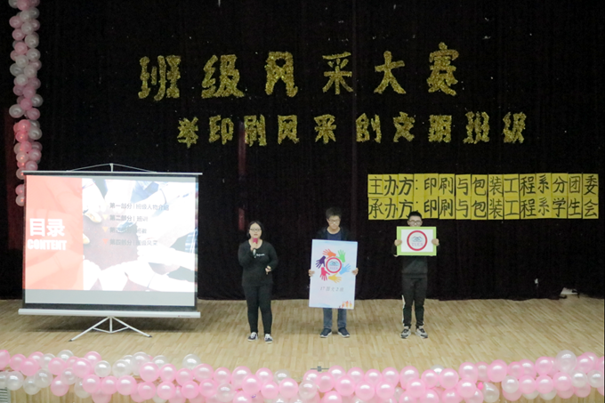 班级风采大赛是印刷与包装工程系多年来举办的特色系部活动。此项活动,既活跃了新生班级氛围,又促进了新生之间加深了解、沟通和合作;既积极培育了班级特色文化,又锻炼了班级干部的工作能力。(印刷与包装工程系)