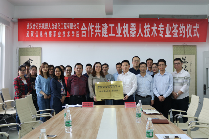 武汉金石兴机器人自动化工程有限公司是一家对工业机器人及自动化控制工程具有丰富的教学与科研经验,服务于高校和社会,为行业培养了一大批高技术人才的科技公司。工业机器人技术专业将由武汉金石兴机器人自动化工程有限公司全方位、全过程参与人才的培养,学生毕业后主要在国家大型工业机器人制造企业从事工业机器人、自动化控制工程的工艺设计、安装、销售及技术服务等方面的工作。本次签约后,校企双方将投入300多万元在校内兴建高规格的“工业机器人技术工程实训中心”,并于2018年开始招生。