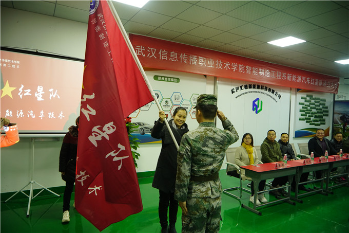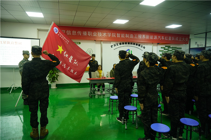 “严守纪律,勤奋学习,积极向上,吃苦在前,享受在后,为院,系,队争光添彩……”在铿锵有力的庄严誓言中,12月20日下午,智能制造工程系新能源汽车技术专业“红星队”正式诞生。我校党委副书记、校长许婷为“红星队”授旗。