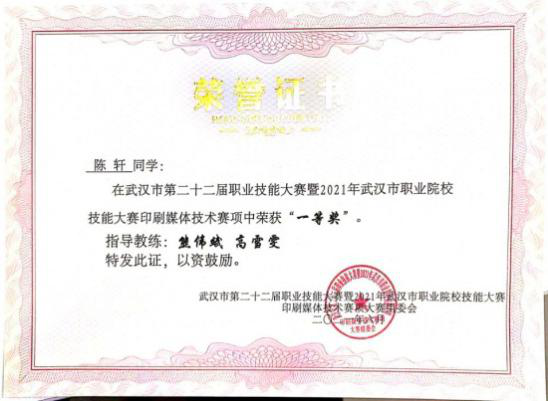 近日,我校传来喜报,智能制造工程学院包装策划与设计1902班陈轩、包装策划与设计1902班陶革两名同学分别荣获武汉市第二十二届职业技能大赛印刷媒体技术赛项一等奖和二等奖。
