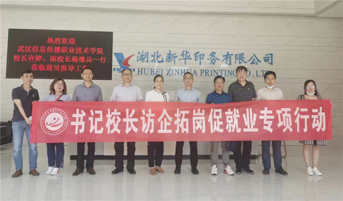 为全面贯彻落实教育部《关于开展全国高校书记校长访企拓岗促就业专项行动的通知》有关要求,5月6日,学校党委书记、校长许婷,副校长杨继兵,智能制造工程学院院长熊伟斌及印刷教研室等相关人员一行走访了湖北新华印务有限公司,共同研讨校企深度合作,为毕业生开拓就业市场。