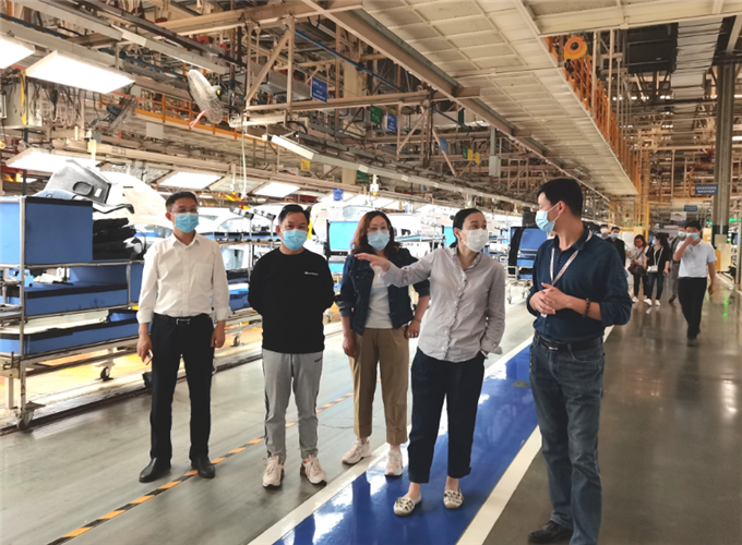 在东风乘用车公司相关人员陪同下,走访团队一行参观了东风乘用车公司展示中心、焊接车间及总装车间自动化流水生产线、大师创新工作室,观摩了最新出产的车型。参观过程中,团队一行对东风公司企业文化及在汽车制造生产及研发等方面进行了详细的了解。