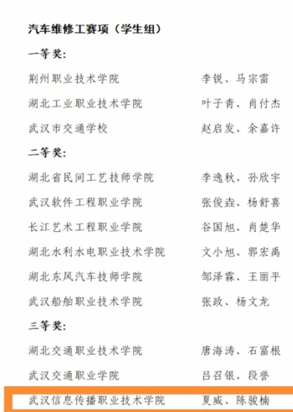 好消息!我校喜获湖北省工匠杯新能源汽车技术技能竞赛三等奖!